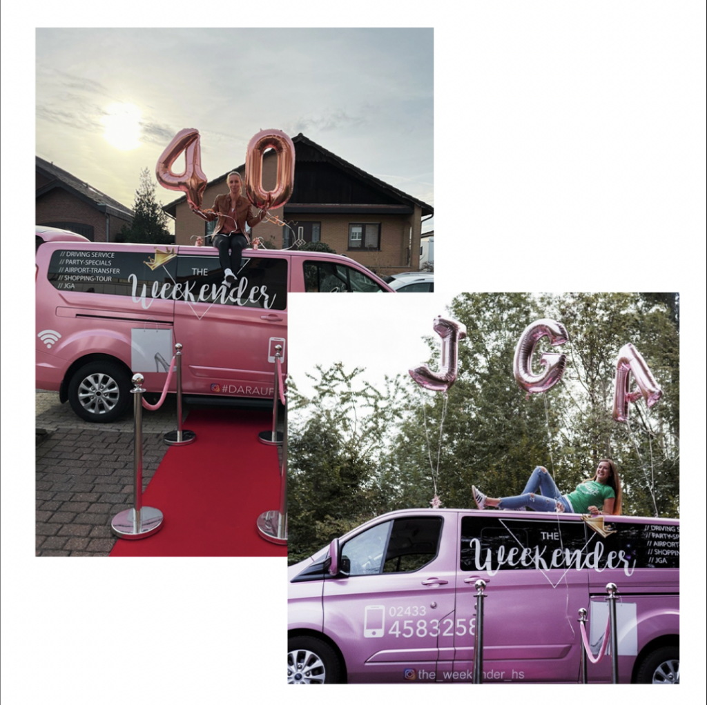 Du hast die Wahl aus unseren 4 verschiedenen Weekender. Unsere Weekender bieten Platz für bis zu 8 Personen pro Fahrzeug Seid ihr eine größere Gruppe? Kein Problem, wir kommen auch mit mehreren Weekendern zu Euch.
